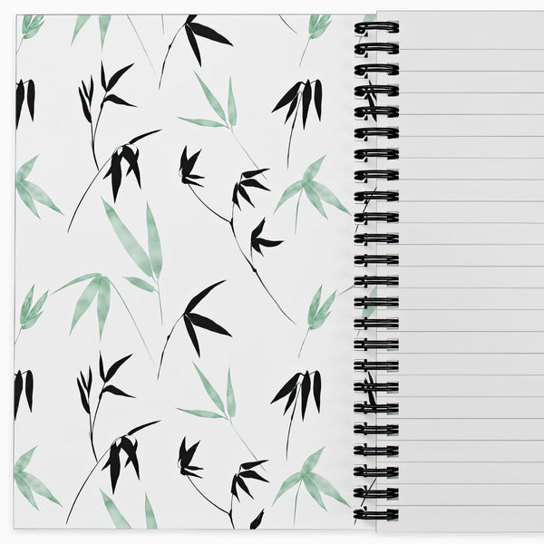 tags: wire-o bound, journaling, writing journal, purse size, compact, small, unique aesthetic, asian art, bird animal, zen minimalist, bamboo green, black white, tancho red-crowned, buddhism eastern spiritual, good fortune
